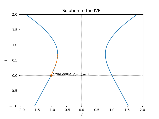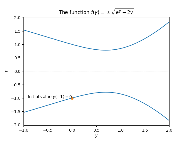 The initial point lies on the curve \(-\sqrt{e^{y}-2y}.\)